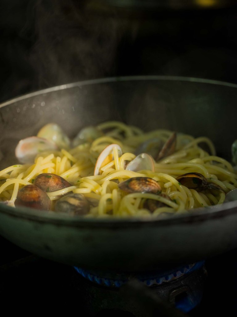 Piatti di pesce della tradizione campana, piatti di carne dai profumi mantovani, e pizze soffici cotte in forno a legna.